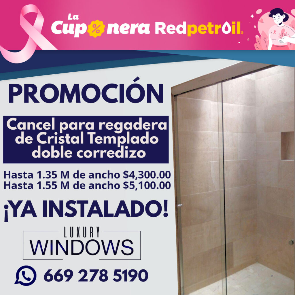 Cancel de regadera doble corredizo de cristal templado, instalado y listo para ti, a precio especial.