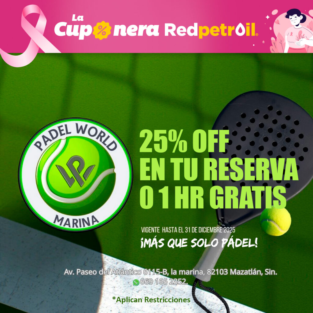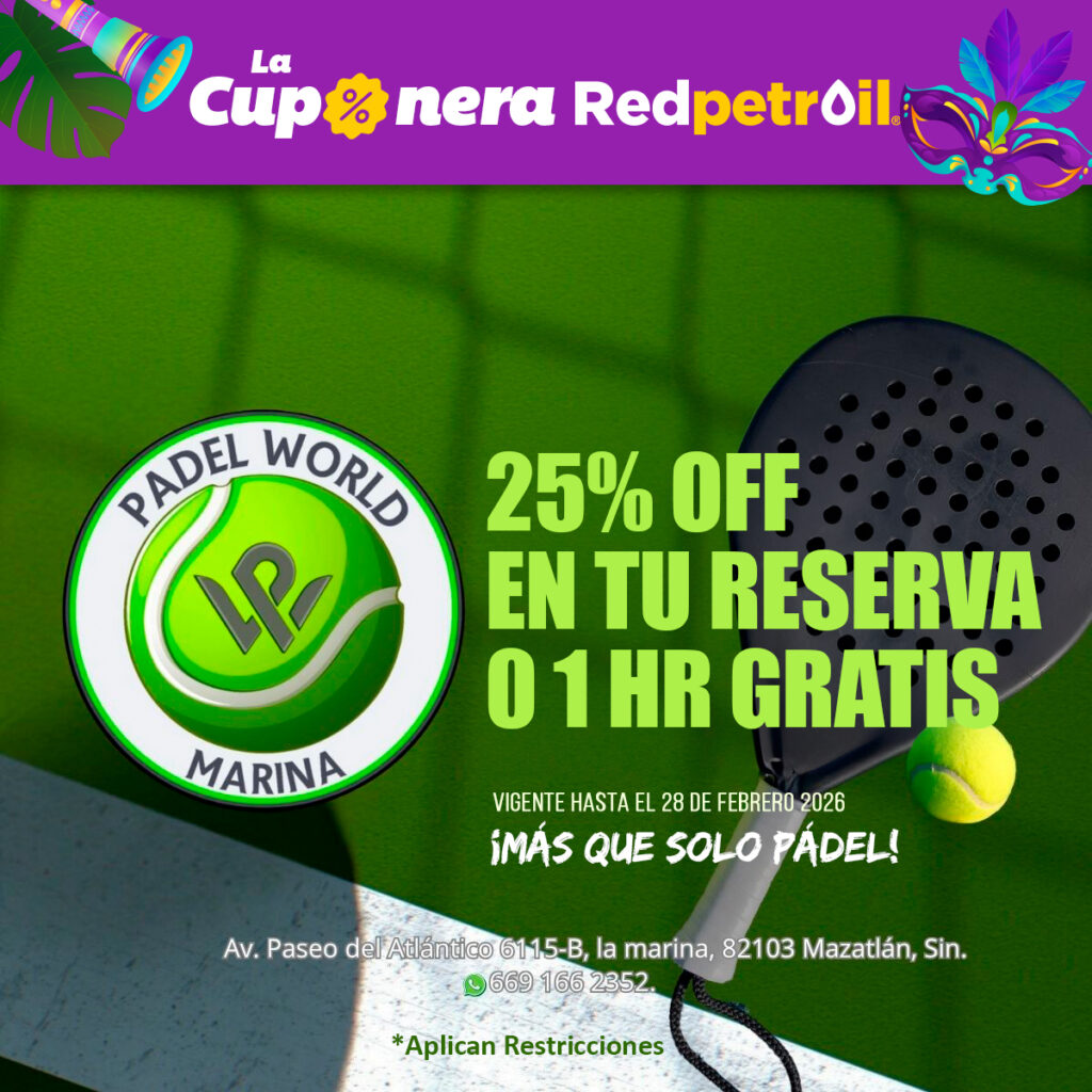 25% Off en la reserva de tu cancha o 1 hora gratis