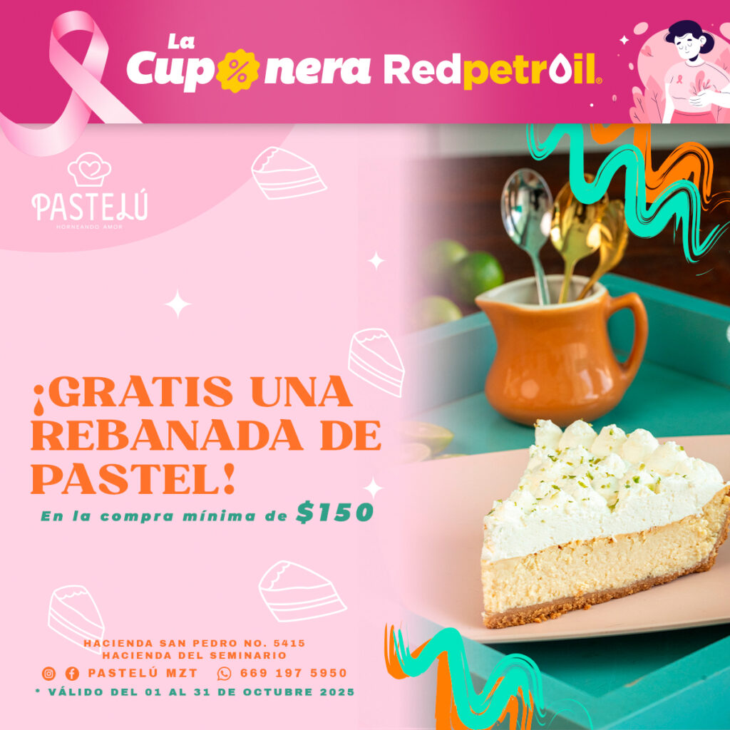 GRATIS una rebanada de pastel en la compra mínima de $150